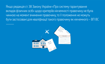 Розглянувши спір, Велика Палата ВС зазначила, що 11 липня 2014 року набрав чинності Закон України «Про внесення змін до деяких законодавчих актів України щодо запобігання негативному впливу на стабільність банківської системи», яким внесено зміни, зокрема, до ст. 38 Закону України «Про систему гарантування вкладів фізичних осіб».
