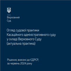 Пропонуємо ознайомитися з оглядом актуальної судової практики Касаційного адміністративного суду у складі Верховного Суду за червень 2024 року – https://supreme.court.gov.ua/userfiles/media/new_folder_for_uploads/supreme/ogliady/Oglyad_KAS_06_2024.pdf