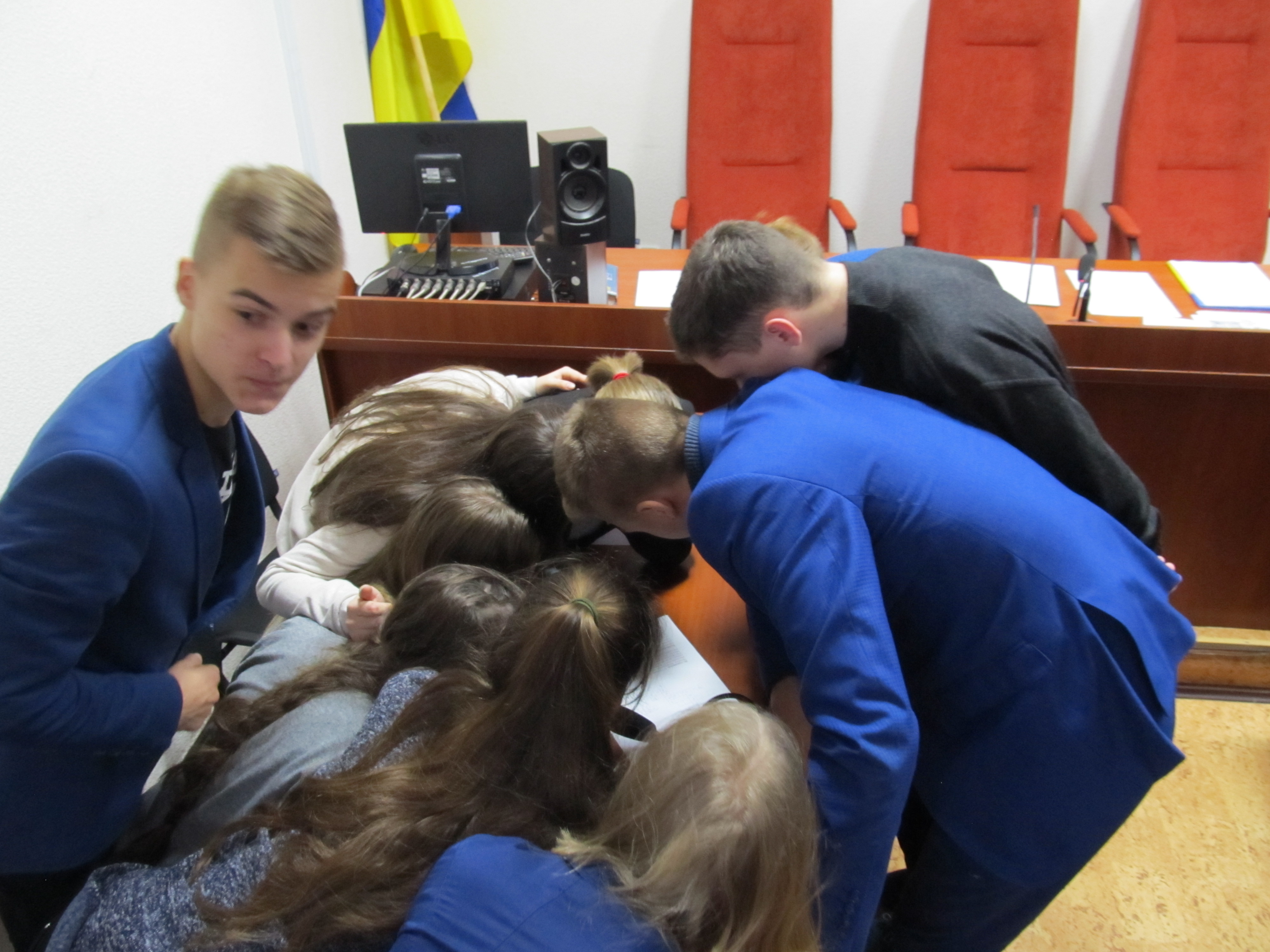 Голова суду Гуменний Зіновій Іванович розповів про діяльність Чугуївського міського суду Харківської області, специфіку роботи, категорії справ, які розглядаються судом, відповів на запитання школярів.
