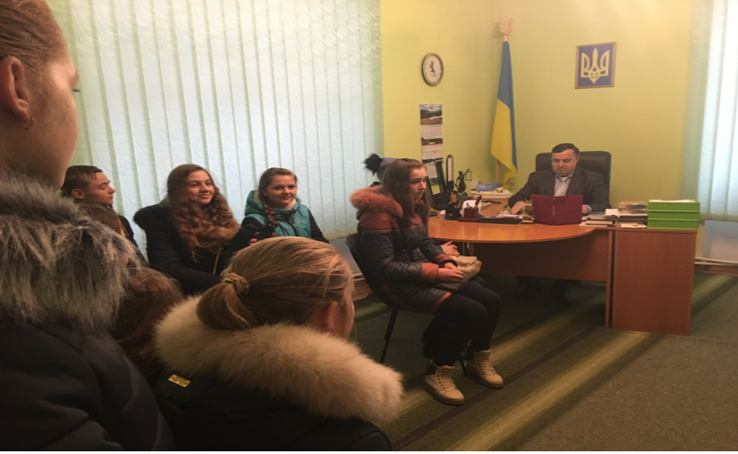На зустріч до учнів вийшов голова суду Гайдур Антон Юрійович, який одразу продемонстрував символи судової влади, в яких судді зобов’язані вести судовий процес: мантію та нагрудний знак. Окрім цього Антон Юрійович розказав учням про деякі особливості судових процесів, поняття нарадчої кімнати, можливості відеконференцзв’язку, види судових рішень, правила поведінки під час судового процесу і т.д.