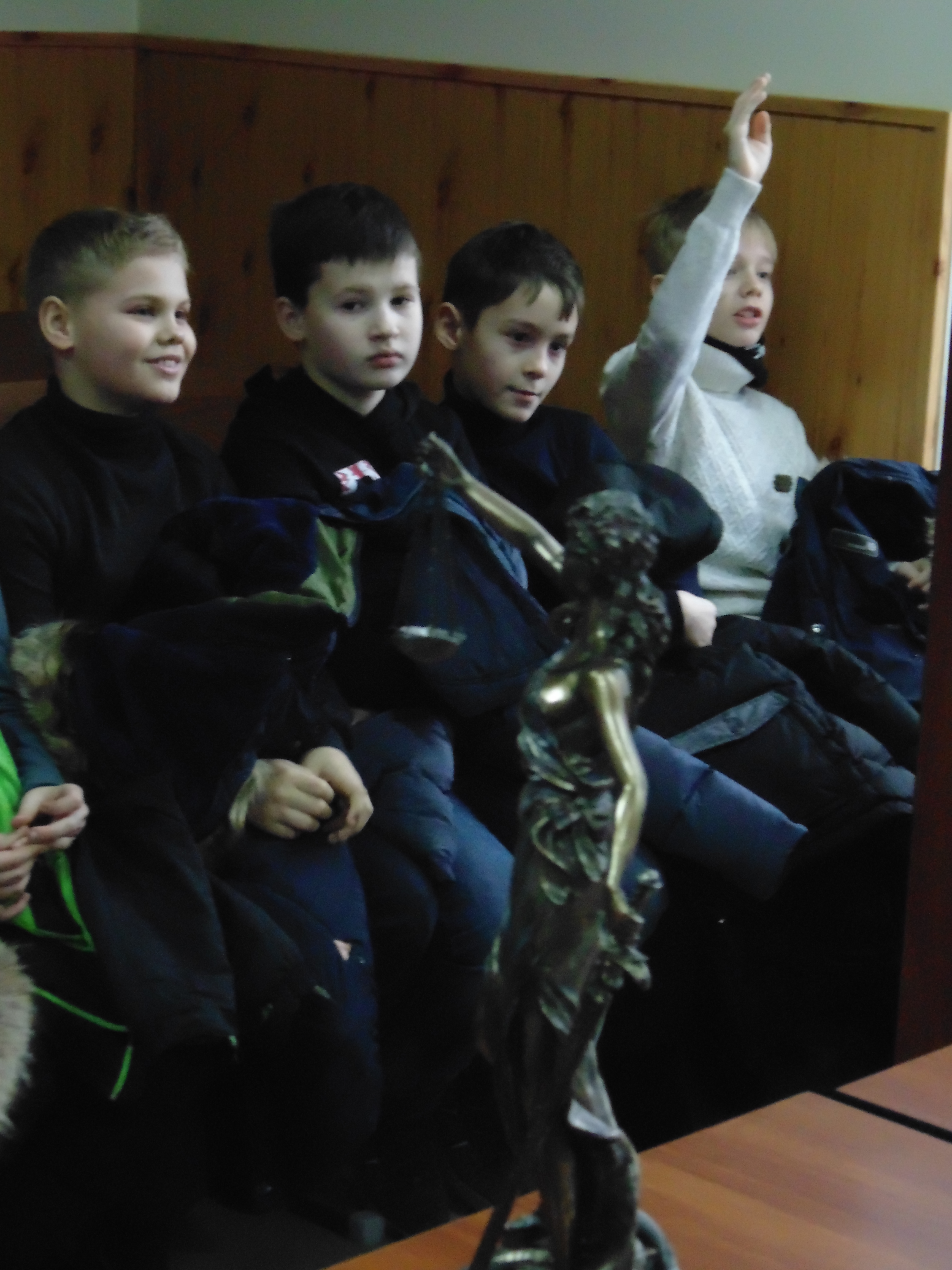 Потім юних відвідувачів було запрошено до зали судових засідань, де керівник апарату Алла Шевченко коротко ознайомила присутніх з діяльністю суду, розповіла про кримінальну та адміністративну відповідальність неповнолітніх. Доступною мовою, на конкретних життєвих ситуаціях пояснила, які категорії справ розглядаються у Зарічному районному суді м. Суми.  А також про можливість проведення судових засідань у режимі відеоконференції та направлення судових повісток у вигляді SMS-повідомлень. А на завершення свого виступу розповіла легенду про Феміду, як символ судочинства, та детально зупинилась на історії її походження.